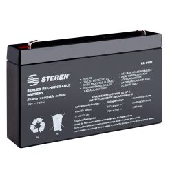 Batería recargable sellada, de ácido-plomo, de 6 Vcc, 7 Amperes/hora y hasta 1000 ciclos de carga/descarga. Util para alimentar UPSs, lámparas de emergencia, alarmas, juguetes, cámaras de video, equipos de sonido portátiles y más.Tiene la característica de "voltaje de carga flotante" que te permitirá tener el cargador conectado por tiempo indefinido a la batería sin dañarla y tenerla lista para su uso en cualquier momento.