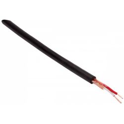 Cable tipo micrófono doble, calibre 22 AWG, 50% de malla de cobre sin estañar, color negro, útil para el armado de extensiones de audio en micrófonos balanceados. Se vende por metro o en rollo de 305 m.