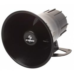 Sirena redonda de un tono constante a 112 dB, 15 Watts y alimentación de 12 Vcc. Mide 13,2 cm (5,2 pulgadas) de diámetro x 15 cm de alto y está fabricada en plástico ABS, color negro. Util para escuelas, oficinas o lugares abiertos.